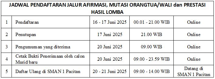 Persyaratan Daftar Ulang dengan datang langsung di SMAN 1 Pacitan wajib menyerahkan: