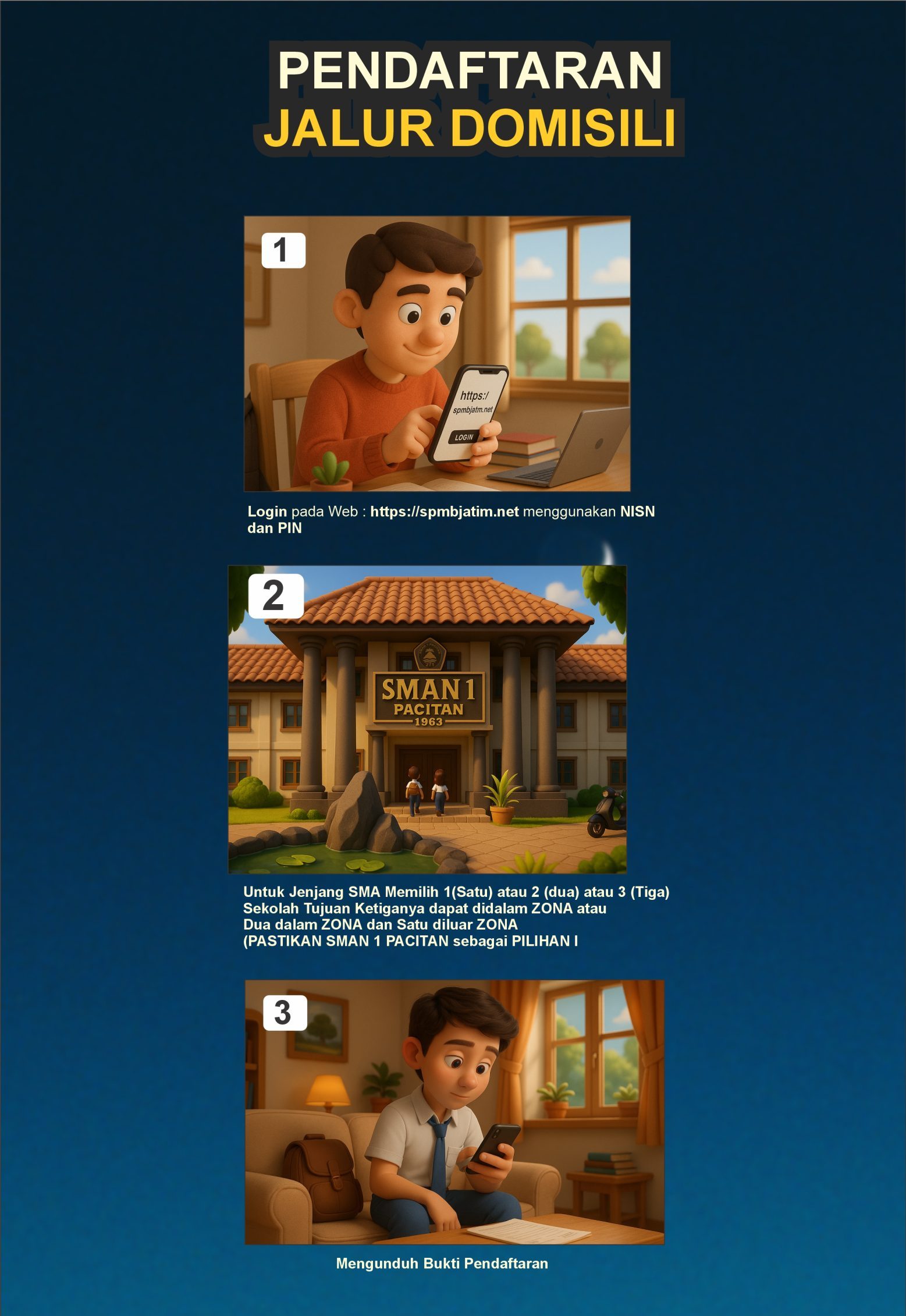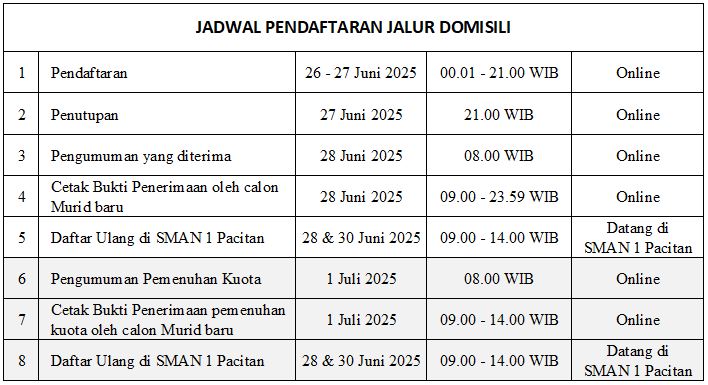 Persyaratan Daftar Ulang dengan datang langsung di SMAN 1 Pacitan wajib menyerahkan: