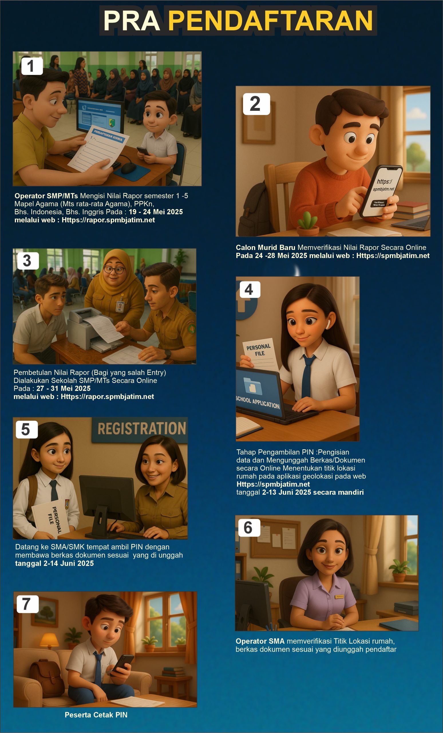 Untuk Lulusan SMP/MTs sebelum tahun 2025 atau Lulusan SMP/MTs lulusan luar propinsi atau Lulusan SMP/MTs tahun 2025 yang nilai rapornya tidak diinputkan oleh sekolah asalnya maka input nilai rapor dilakukan oleh peserta sendiri bersamaan dengan jadwal pengambilan PIN yaitu 2 Juni s.d. 13 Juni 2025