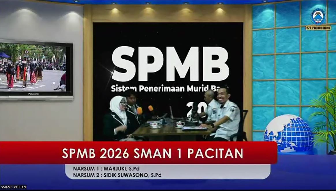 PACITAN (22-04-2026) – Antusiasme luar biasa mewarnai pelaksanaan Sosialisasi Seleksi Penerimaan Murid Baru (SPMB) Tahun Ajaran 2026/2027 yang diselenggarakan oleh SMA Negeri 1 Pacitan. Menyesuaikan dengan perkembangan teknologi dan demi menjangkau audiens yang lebih luas, acara ini sukses dilangsungkan secara daring melalui platform Zoom Meeting serta disiarkan secara langsung (Live) melalui kanal YouTube resmi sekolah.